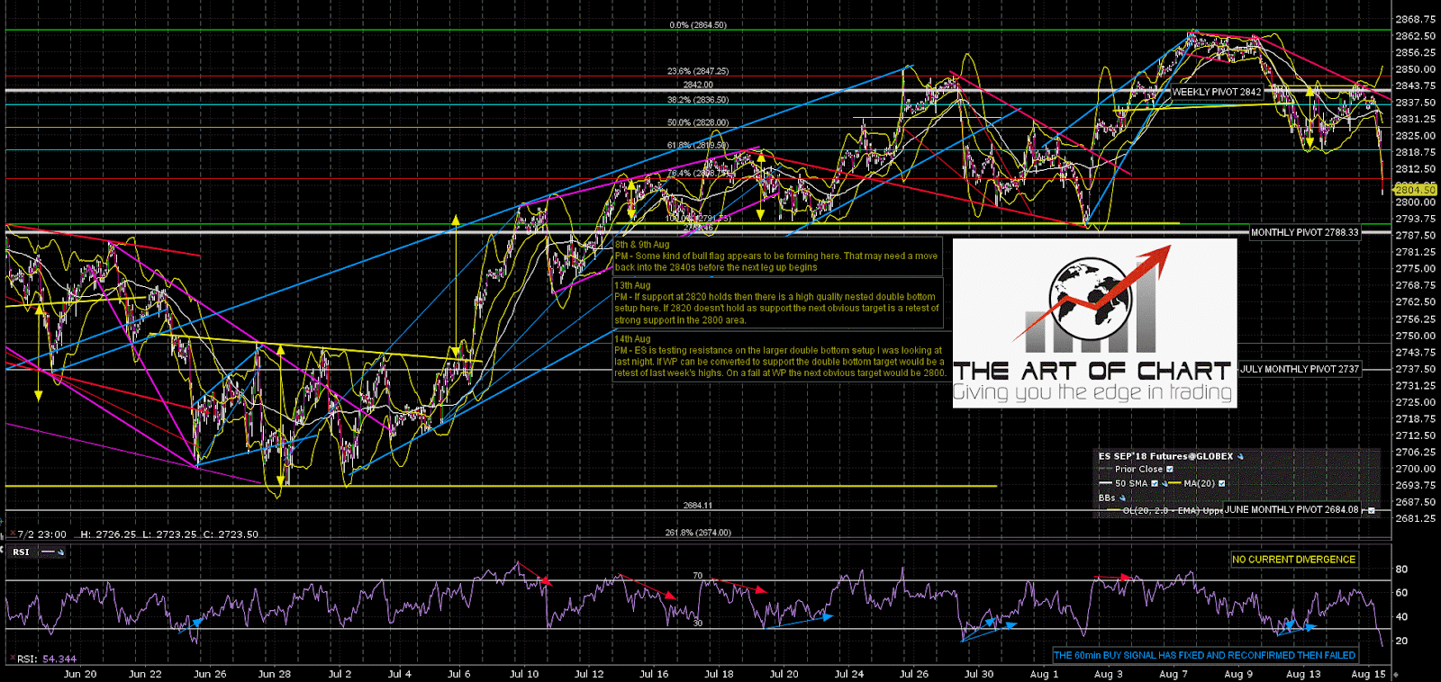 I was saying on my twitter yesterday that if ES could break and convert to support weekly pivot at 2842 then ES/SPX could head up directly, but in the absence of that a test of 2800 area support was likely, and well, here we are. So what now?
