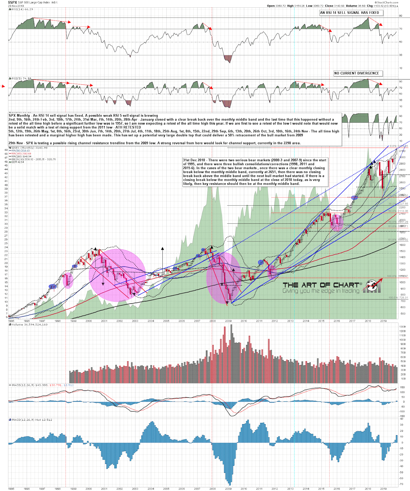 So where might that retracement go? Well on SPX there has also been an interesting development at the high this month, as a decent quality rising channel may now have been established from the 2009 low. If that channel resistance holds and SPX returns to channel support, then that is now just under 2300. I’m wondering whether this retracement might return to retest the December 2018 low at 2346, and perhaps establish a firm floor there, and then return to channel resistance, just tested of course, and rising at about 145 handles per year. That would be an ideal trading scenario here and it might be too much to hope that SPX would give us such an generous gift. Still that scenario will certainly be at the top of my Xmas list for Santa this year. 🙂