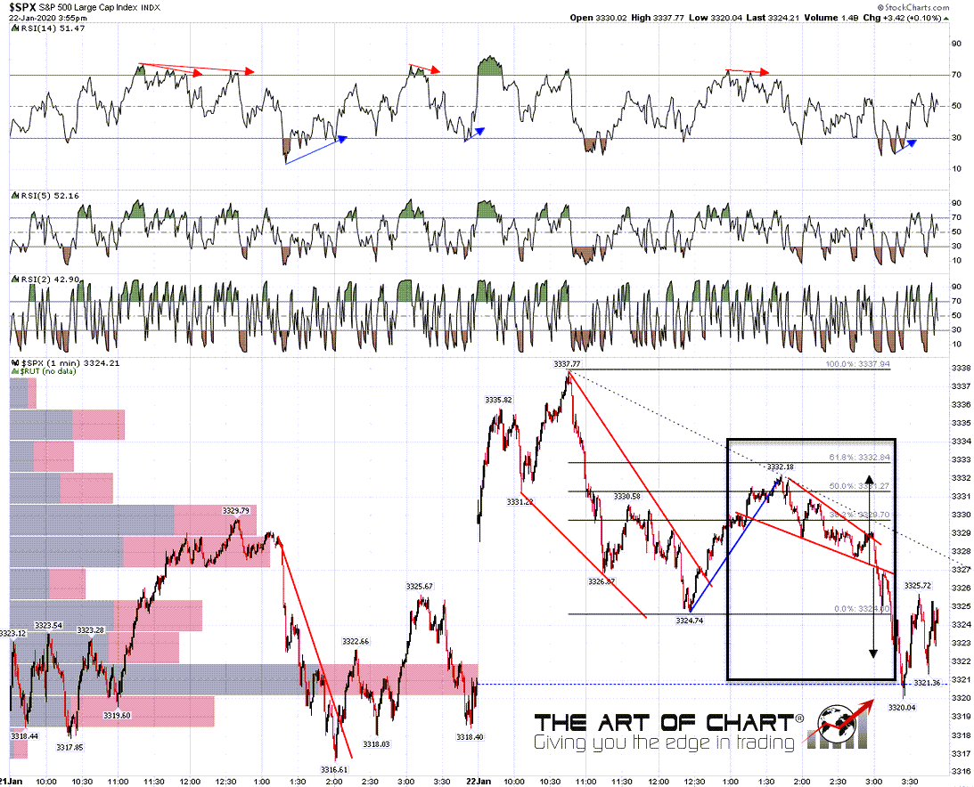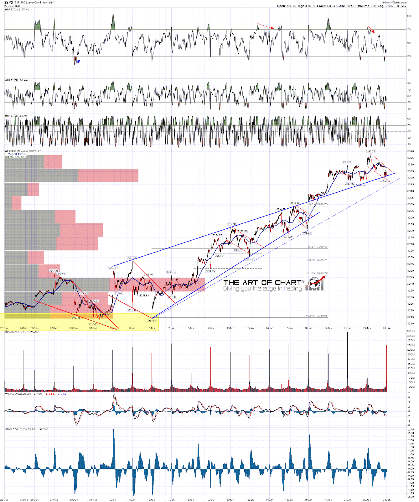 But then ……. there was a very interesting setup last week where it seemed that the perfect short term rising wedge from 3214.64 might break up, and I did a webinar that afternoon at that inflection point that I then posted on my twitter.