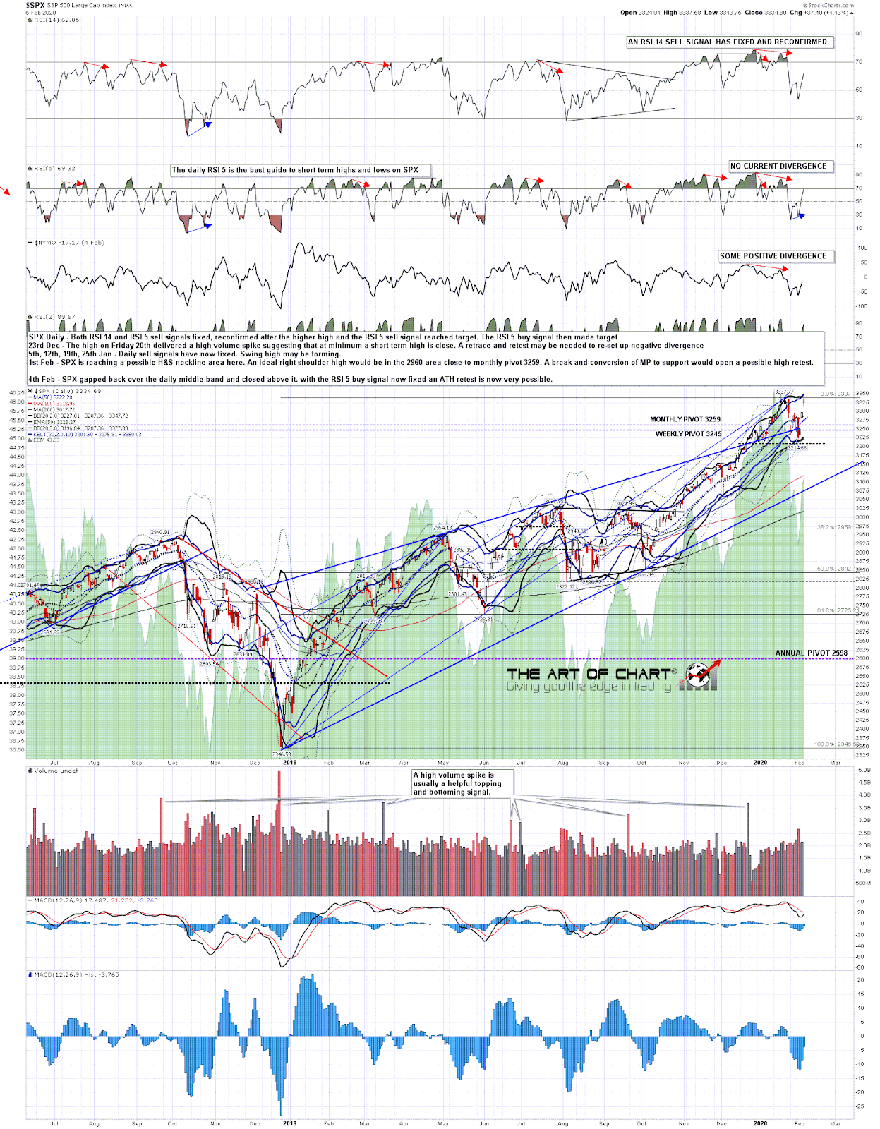 On the daily chart SPX closed over daily upper band today and we may well see the retracement we didn’t see today tomorrow instead. There is some support for that on the shorter term charts.