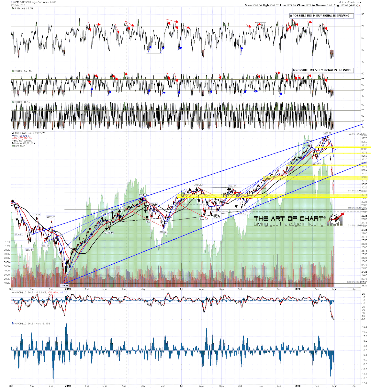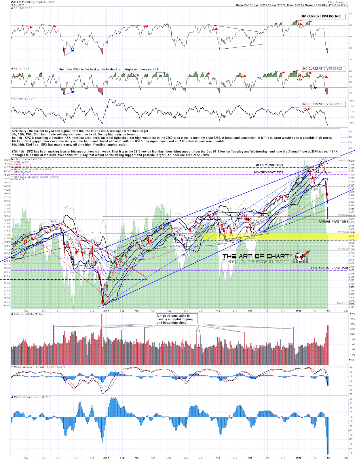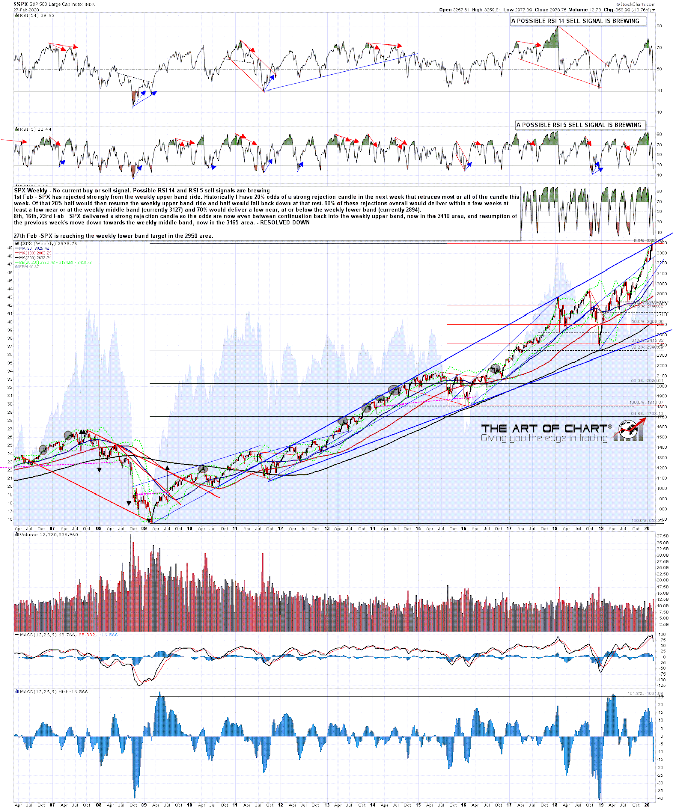 Well it has definitely been a week to remember, with the coronavirus outbreak taking position front and centre. I was expecting a strong reaction as and when this penny finally dropped, though not this fast I have to say. Let’s review the bigger picture on SPX first.