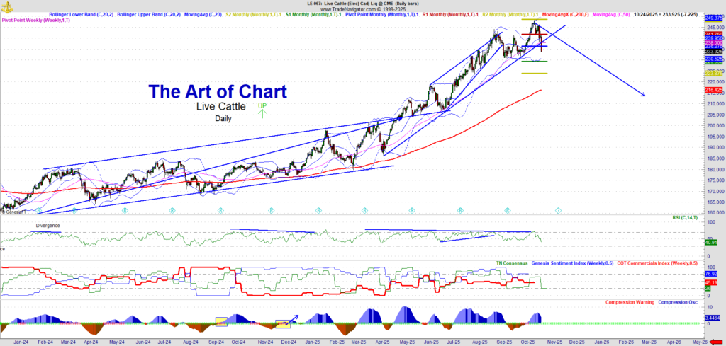 We expect subscribers to have captured 60% of the swing in live cattle which is over $14,500 in profit using a margin of only $5,115. A great example of using leverage in futures.